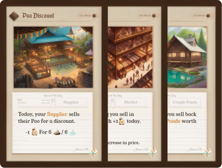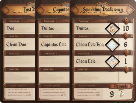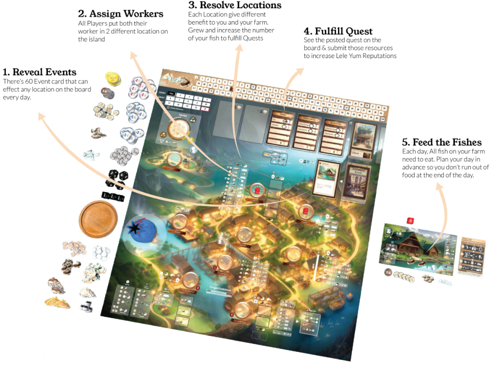 Provided below is a simple overview of how each Round (Day) is played in Lele Yum. The main objective of the game is gaining Reputation to reach a target by means of Fulfilling Quest. For the complete run down on how each day is played, please refer to the rule book in the link below.
